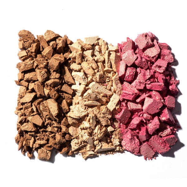 Colour: Bronzer (a luminous matte warm bronzer), Highlighter (a soft shimmering champagne), Blush (a luminous rosy pink)